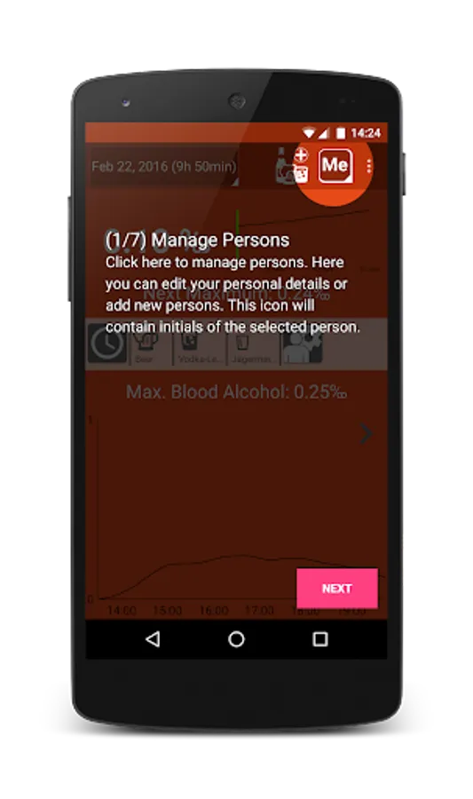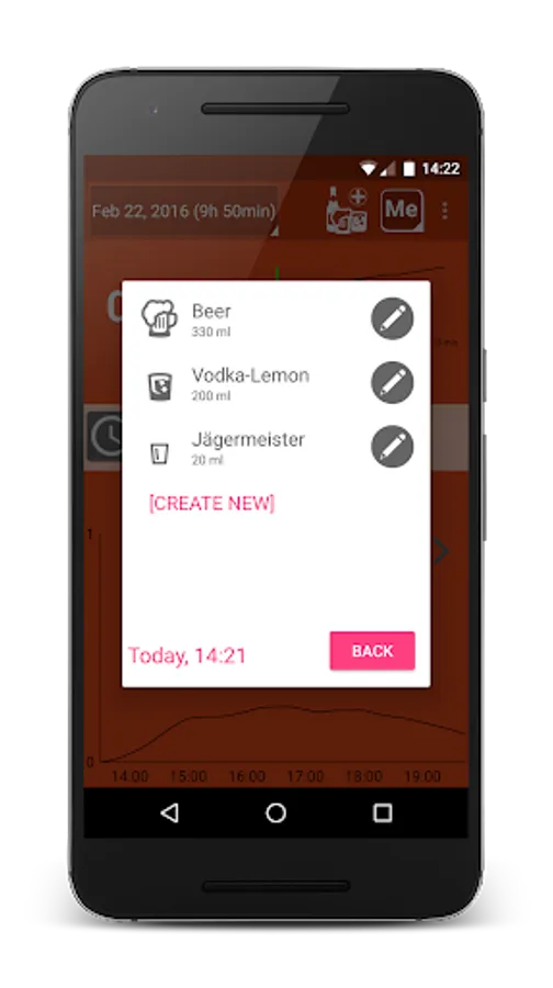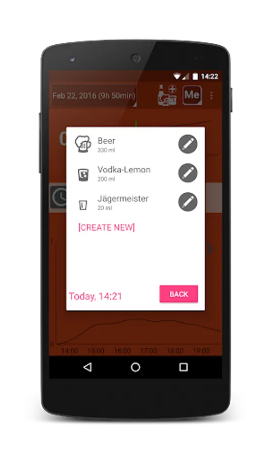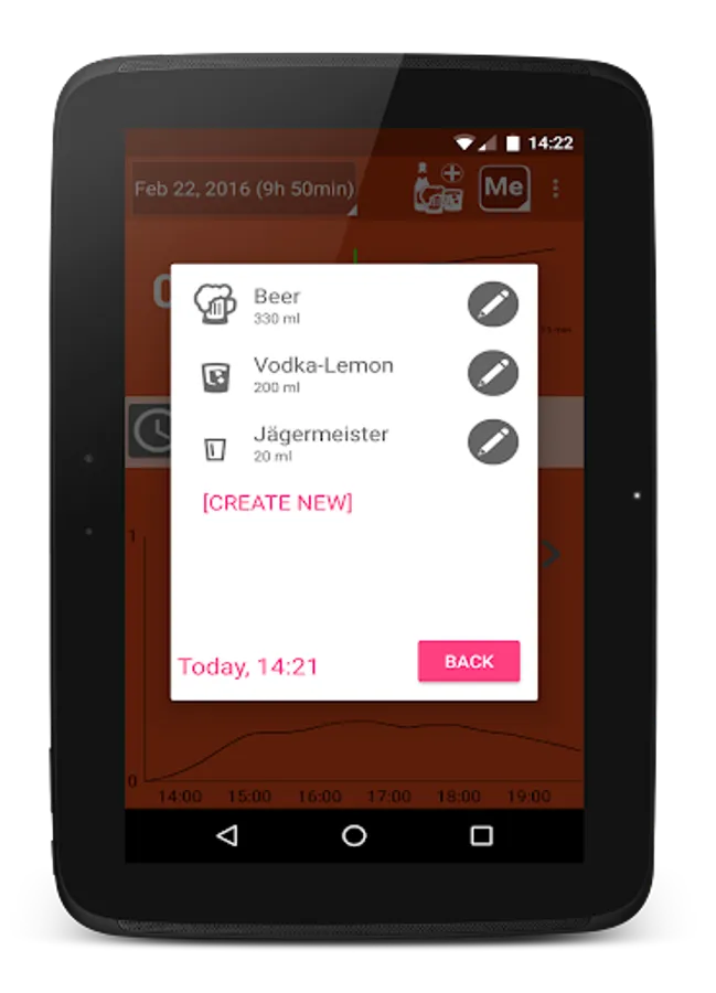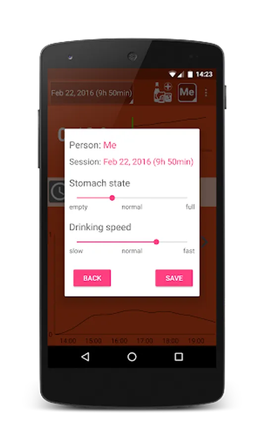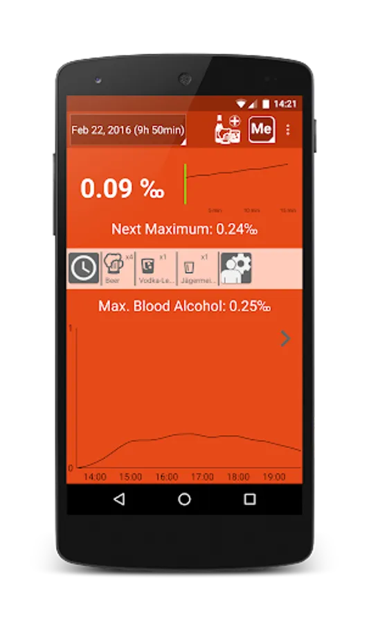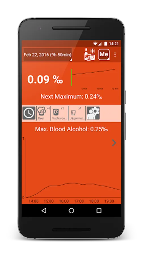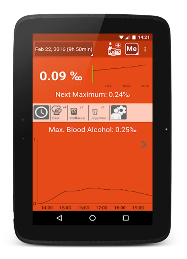 This app (ALC) helps you to get an idea about how alcohol consumption (drinking) is influencing your body and especially your blood composition. Simply track your drinks on any occasion (e.g. Party) and watch your blood alcohol level increasing, but keep within reasonable limits! Alcohol Level Coach tries to imitate the whole process of alcohol absorption and takes several factors into account: Personal details (e.g. weight, height, age and gender), drinking speed, state of stomach, delay of absorption and custom drink mixtures. Altogether the resulting alcohol level provided by ALC should be a reasonable, but still theoretical estimate of your actual alcohol level.