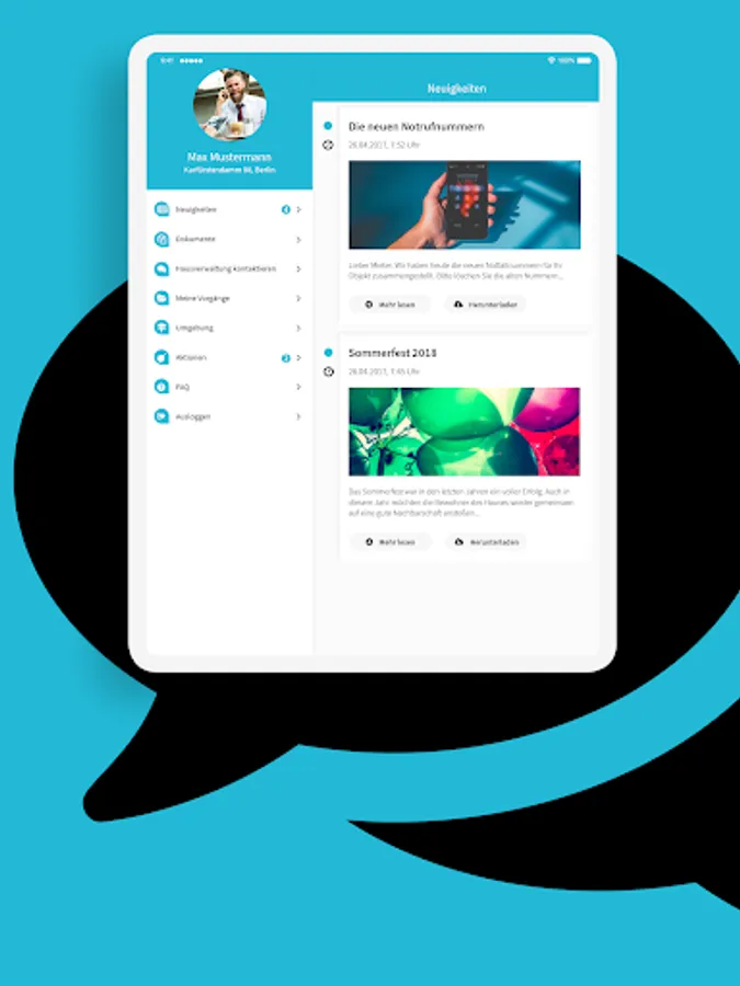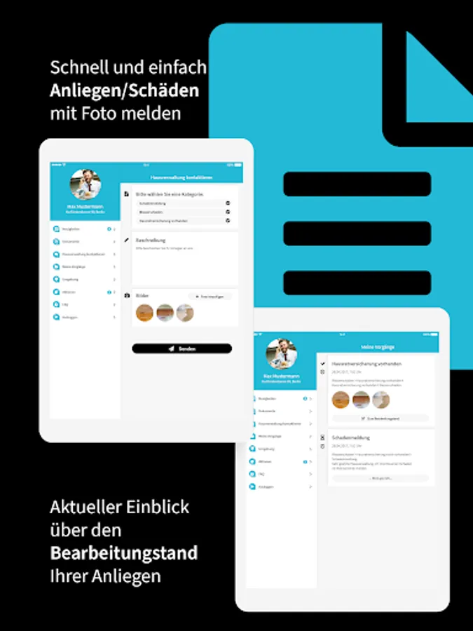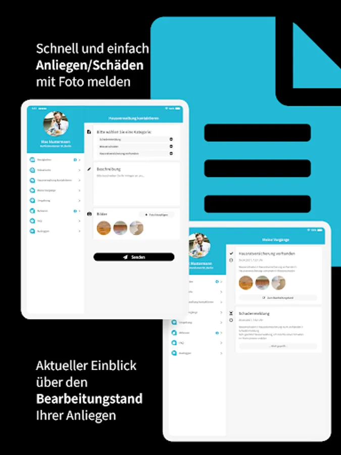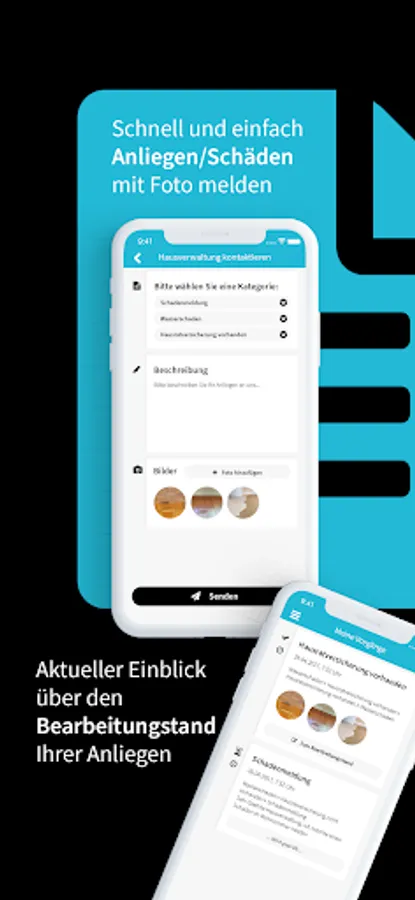 As a tenant or owner, you can report damages or concerns directly with photos via our app. Your inquiries are then available to our employees for processing and can also be forwarded to craft businesses.