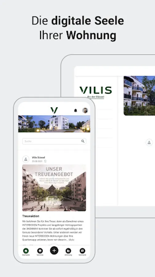The VILIS Düssel app is available to all users of the property free of charge and offers different services and functions, such as a digital communication channel, the reporting of complaints and many other services around the property that make everyday life easier.