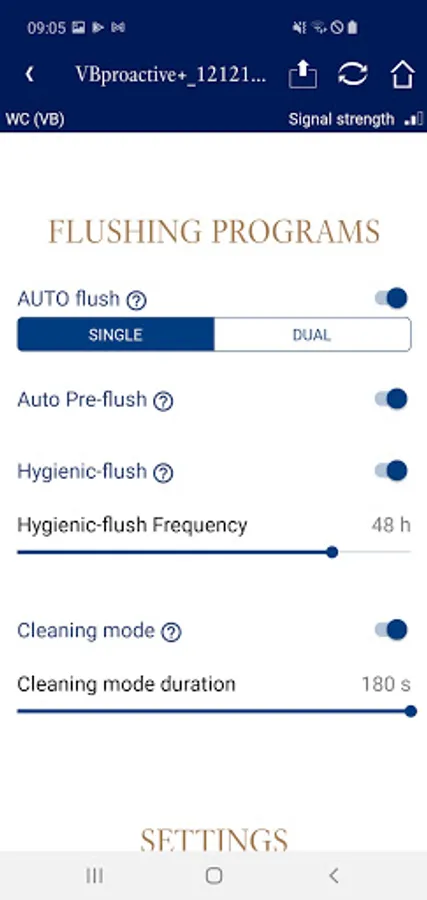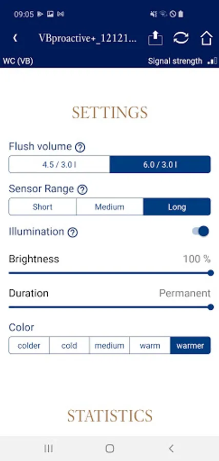 The new Villeroy & Boch Pro APP offers to create individual user profiles for the WC sensor operated flush plate ProActive+ and the urinal flushing sensor system ProDetect2.