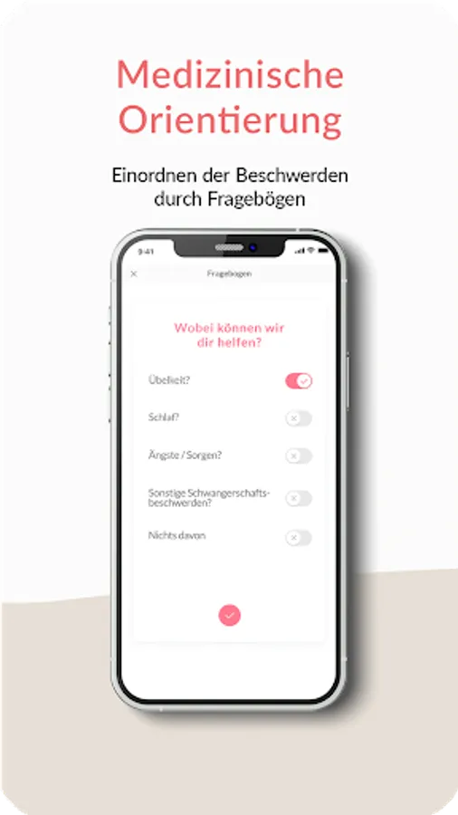 vimumCARE can be prescribed by doctors of all disciplines after inclusion in the provisional DiGA directory. As a DiGA, vimumCARE is fully reimbursed by all statutory health insurance companies for defined complaints such as nausea (hyperemesis gravidarum), generalized fears and sleep disorders during pregnancy. You will receive a prescription from your doctor, which you can submit to your health insurance company. This provides you with an access code for your use of the vimumCARE app.