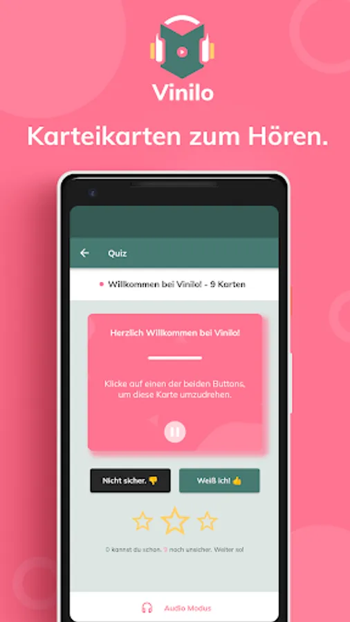 Learning with flashcards is as old as it is effective. But there is even more learning success and fun when the cards can talk. The innovative audio mode allows learning without interaction, just with headphones like an audio book!