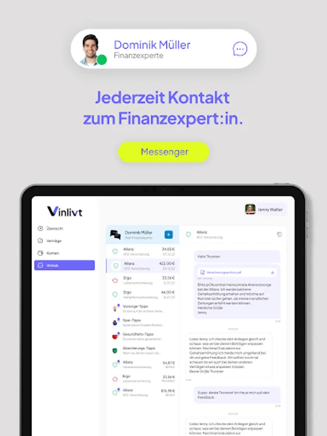 Your personal insurance manager is now always available in your pocket and accompanies you safely through everyday life. Your finances are the focus and your protection.