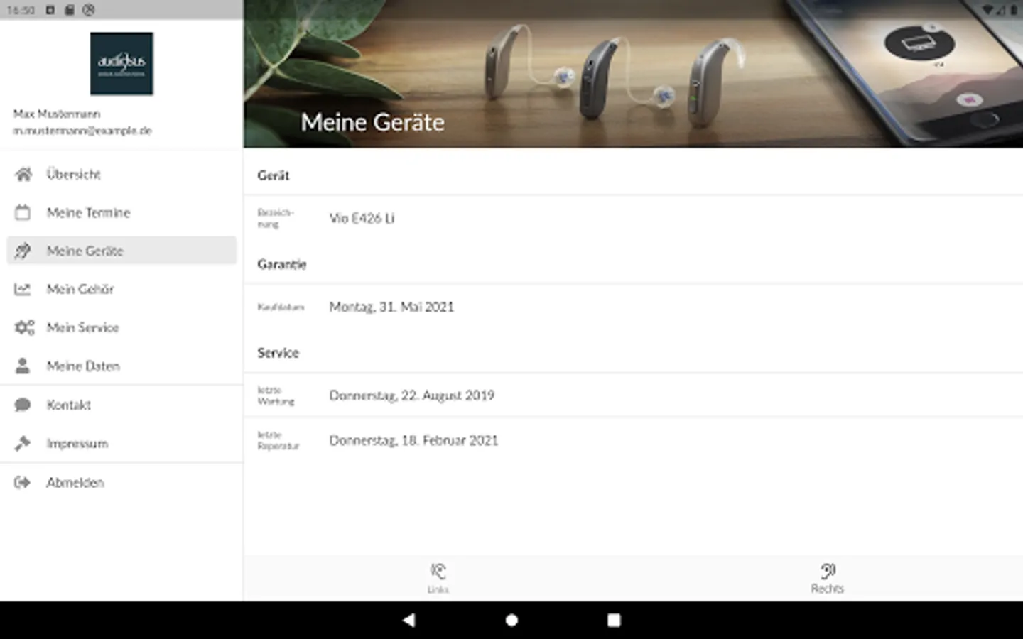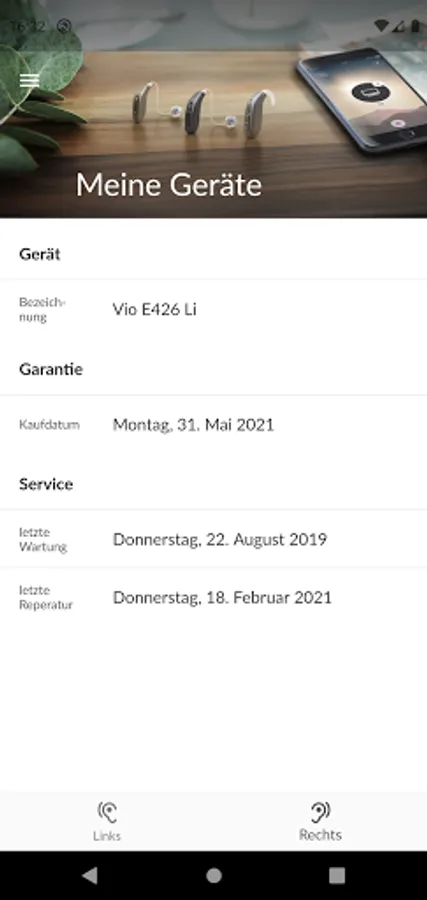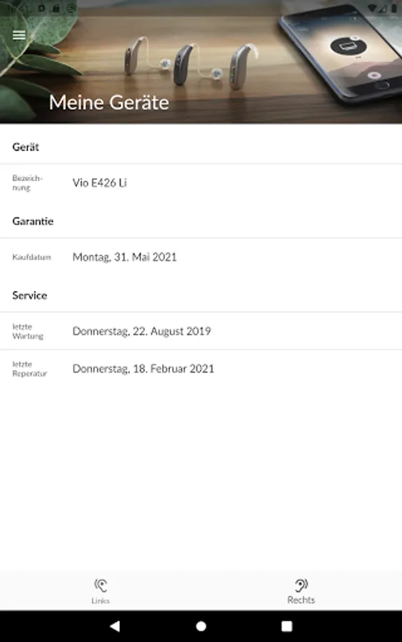 The myViO app replaces the well-known hearing aid service booklet and offers new digital services such as appointment booking, appointment overview and appointment reminders. My ViO shows you all the important data about your hearing aids, provides information about the date of purchase, the warranty and your hearing (audiogram). In addition, you are well informed about all current offers through the app.