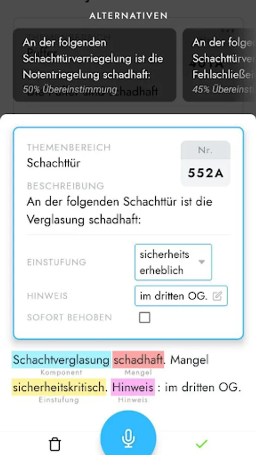 Experts can intuitively intervene during the check, our AI automatically generates the correct defects from the defect tree, checks tire admissibility and integrates them into the existing documentation software.