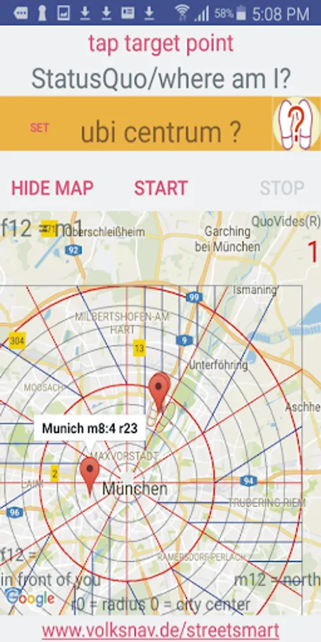 The application uses GPS and compass and lets you know the direction to the center. That posibilta the VolksNav (c), an auto-pilot as elegant as in Rio de Janeiro around the statue of Christ in or out and orario sense or against. The instructions are primarily is www.volksnav.de/StreetSmart.