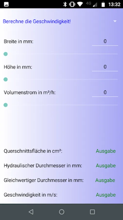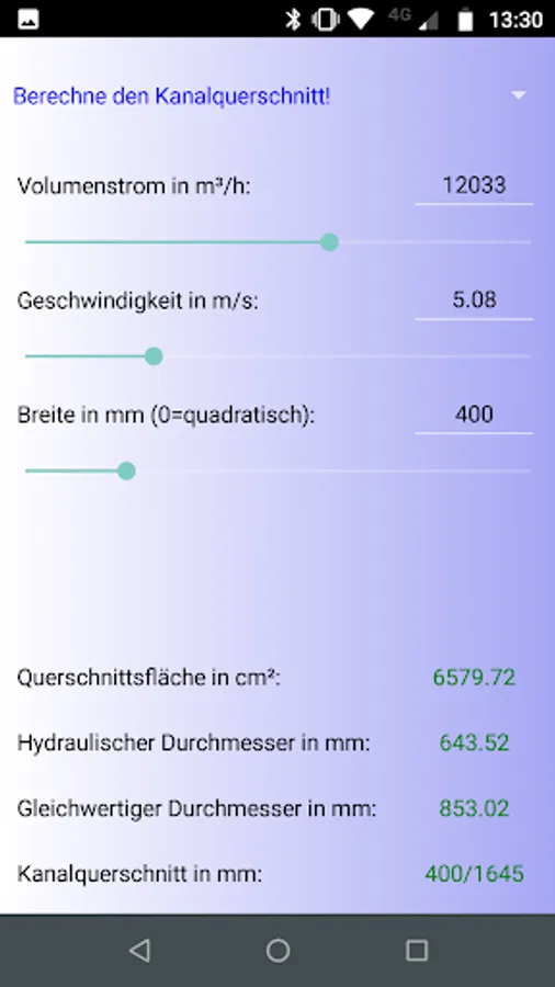 For round and square ducts, calculate the cross-sectional area, the volume flow or the required duct dimensions.