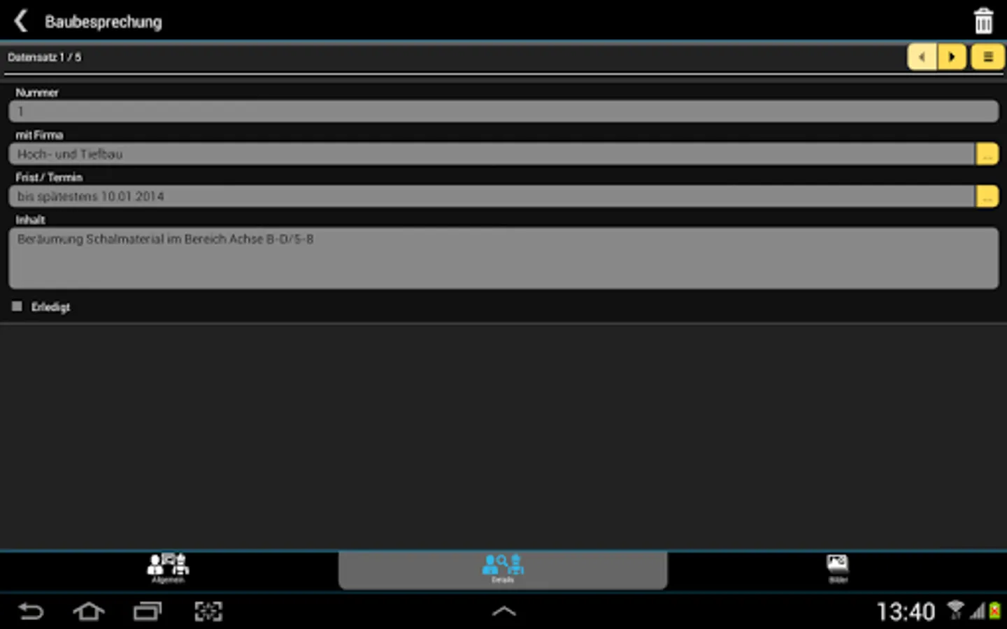 The building diaries can be synchronized with the database of our construction diary software for Windows (version 2014 or higher). For this, the app offers the following interfaces: