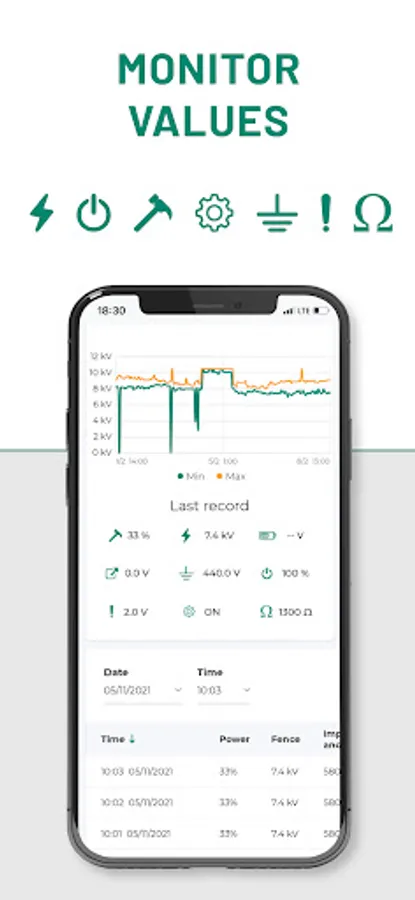 The user has clear access to all the main information about the fence and has the option to set an alarm for each generator and monitor, which will alert you to exceeding the set limits.
