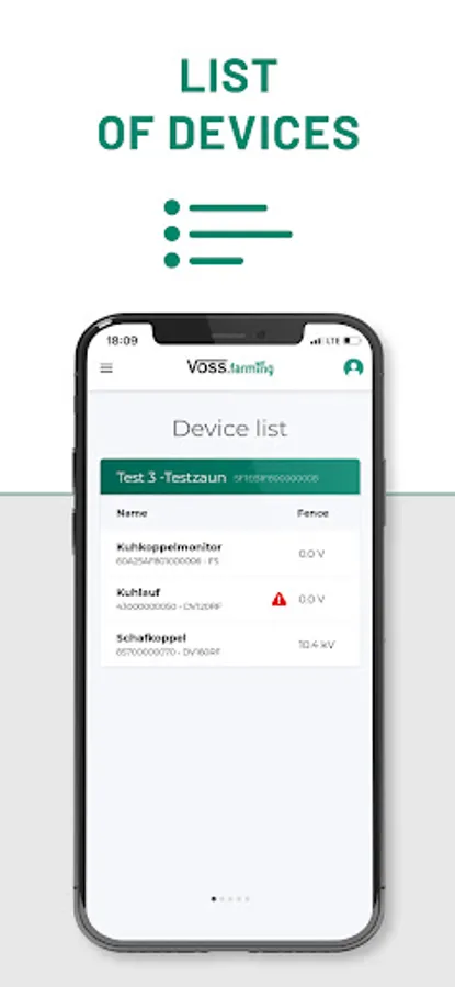 Using the application, it is possible to control connected devices and check their status via a mobile phone.The VOSS.farming Fence Manager FM20 WiFi enables remote central control and management of electric fence generators and monitors. This means that up to 12 independent generators or connected control devices, VOSS.farming Fence Sensor FS20, can be controlled within range of the antenna.