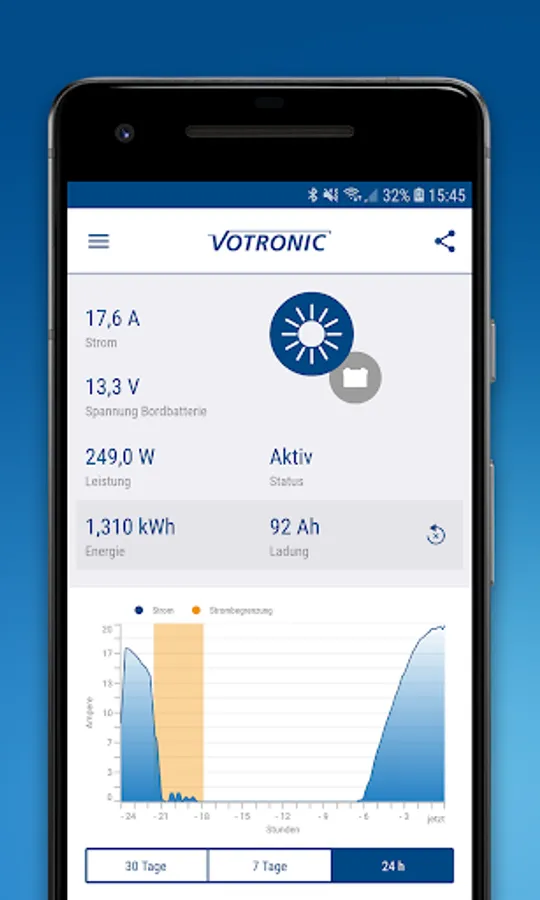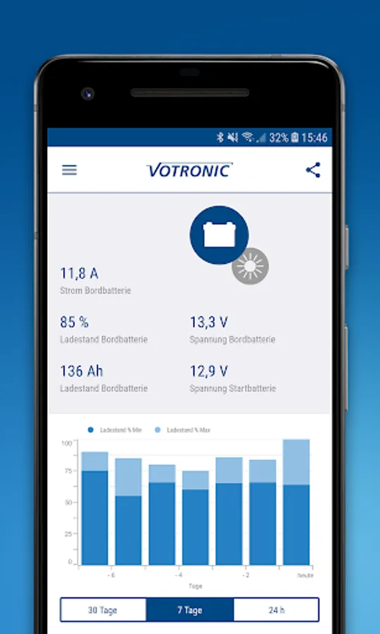 The Energy Monitor, in conjunction with the Votronic Bluetooth Connector S-BC all live data of Votronic solar charge controller (from 2013) and / or the LCD Battery Computer S or VPC Jupiter with smart shunt.