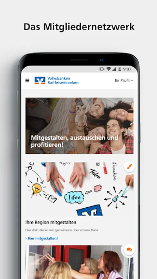 The values of the cooperative and membership - these are the features that make the Volksbank Raiffeisenbank special. The Digital member network transmits this uniqueness in the digital world.