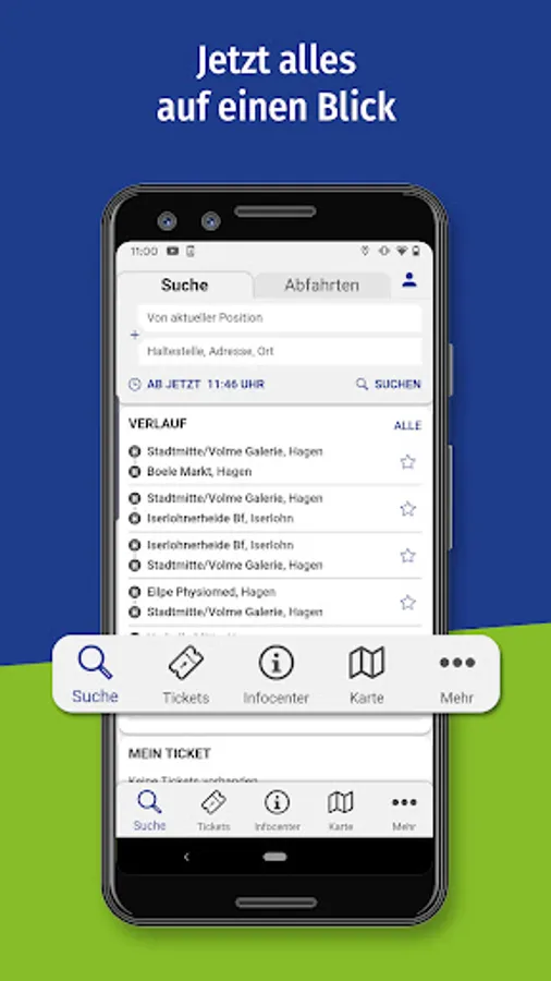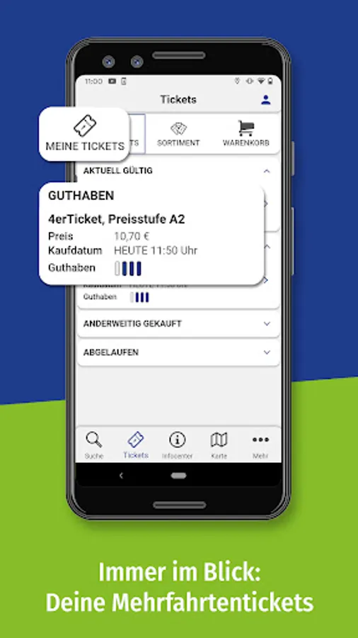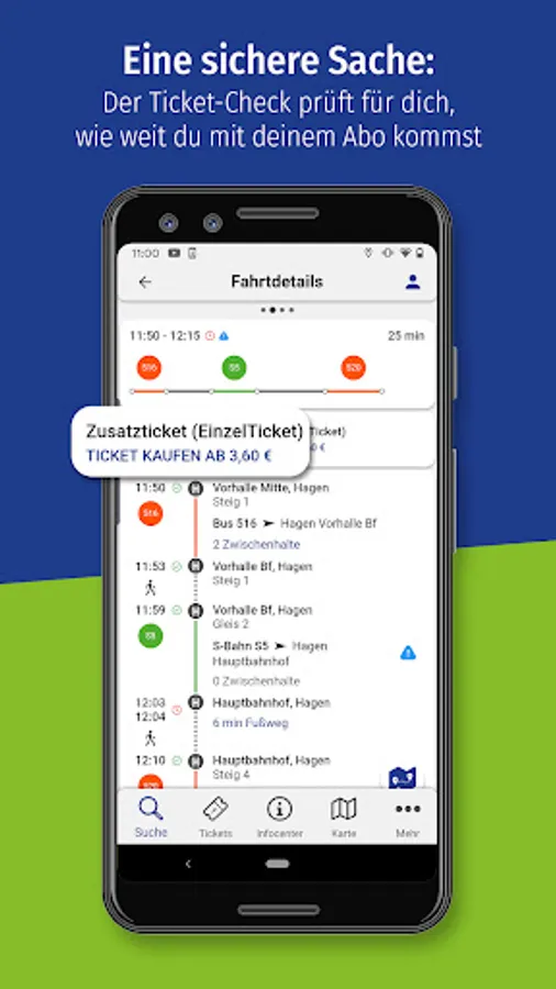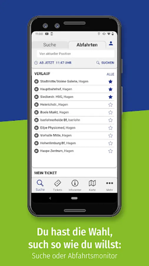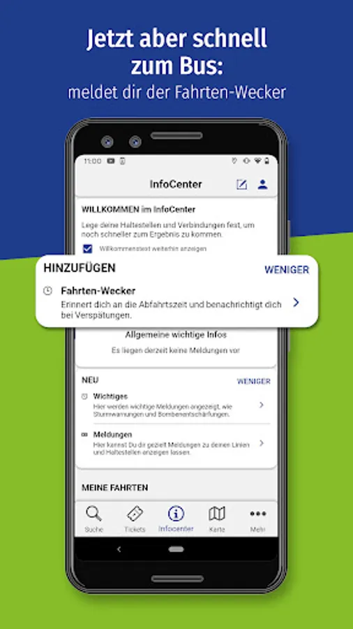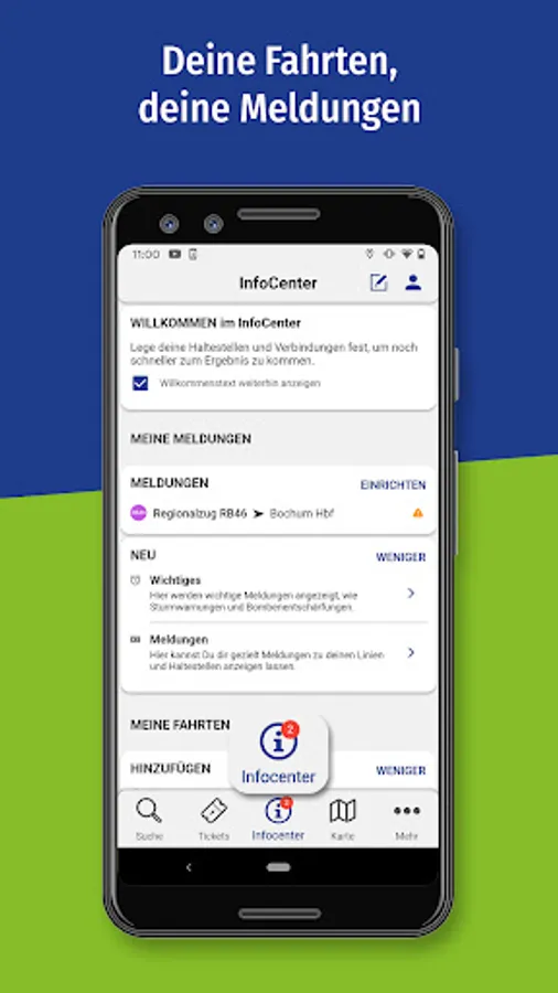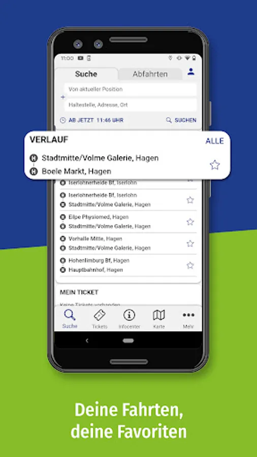 • Personal area: For regular trips by bus and train, you can save your most important destinations in your personal area and in future you will receive important information at a glance.