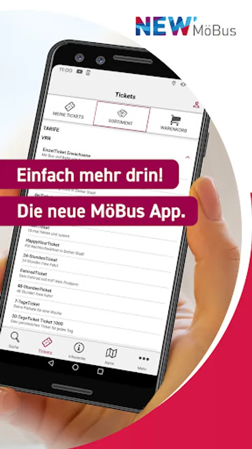 In addition to the VRR tickets, you can also get VRS and NRW tickets in the NEW MöBus app. For example the Simply Next Ticket.