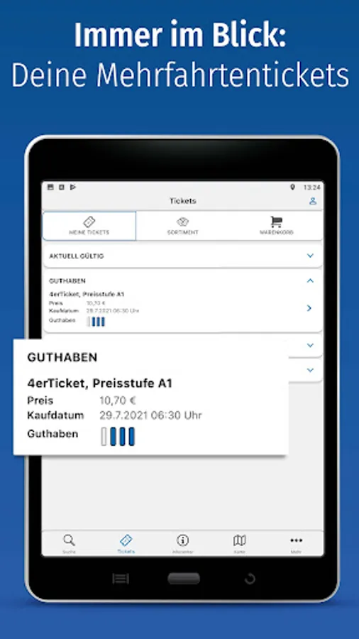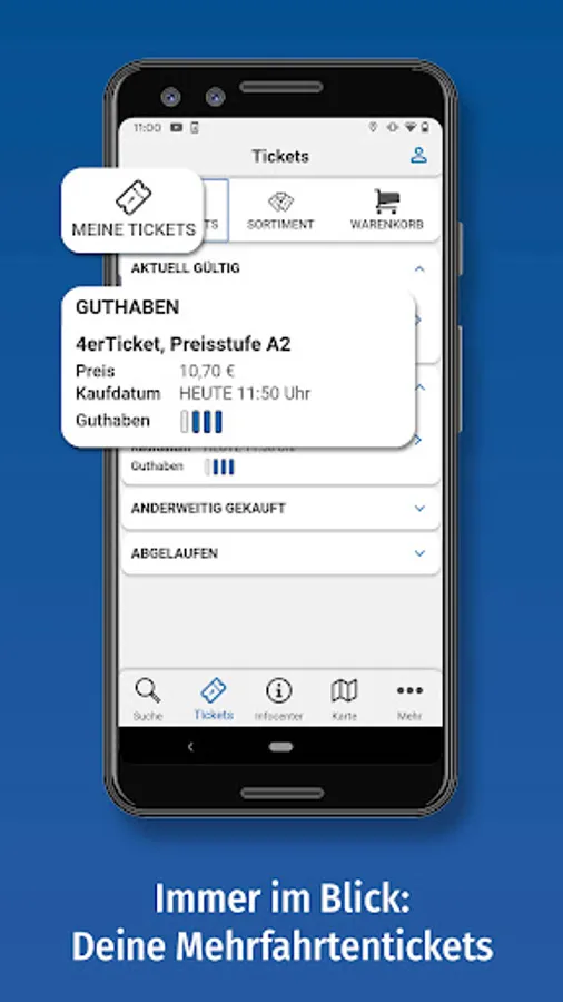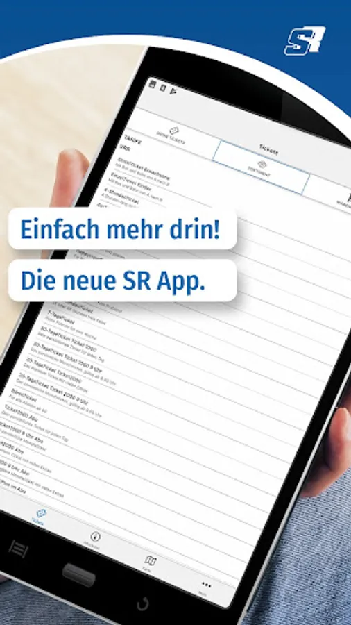 With the SR app you can buy tickets at any time - pay conveniently without registration by prepaid or after a one-time registration by direct debit or credit card. In addition to the VRR tickets, you can also get VRS and NRW tickets in the SR app.