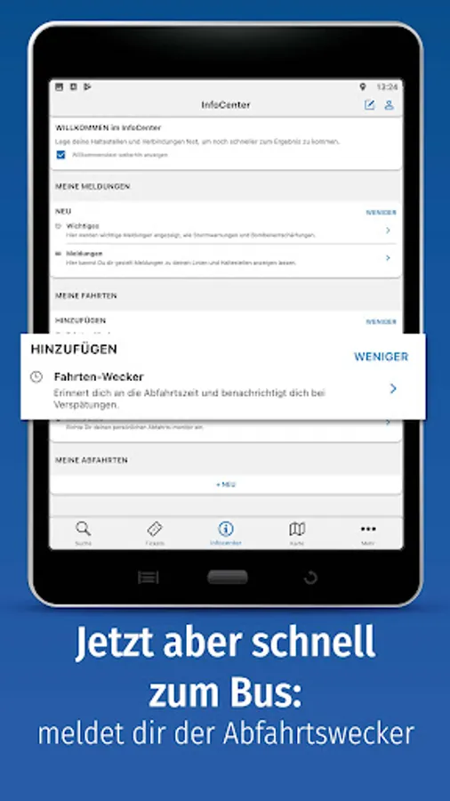 The departure monitor shows you the next departures at the stop you have selected - taking into account real-time data and punctuality forecasts.