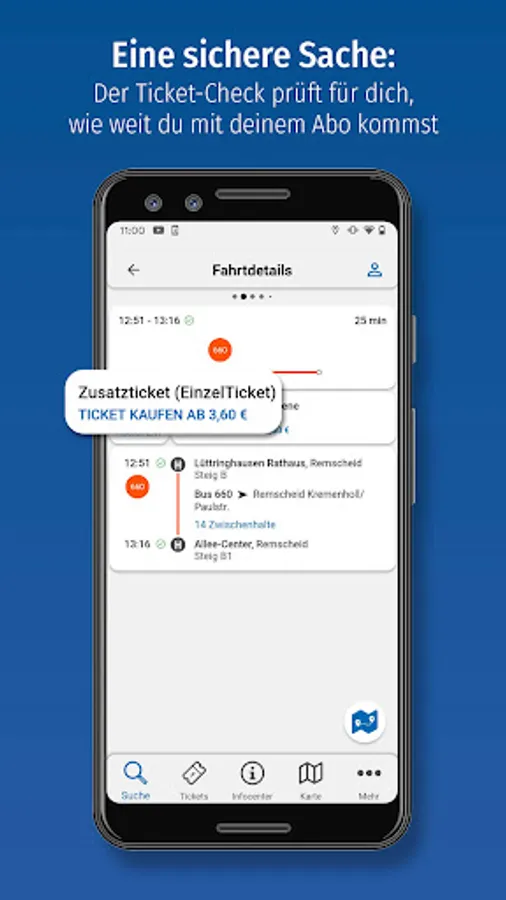 With the SR app you can easily buy tickets for bus and train in Remscheid and for the entire Rhine-Ruhr transport association (VRR) and you will receive timetables and up-to-date information.