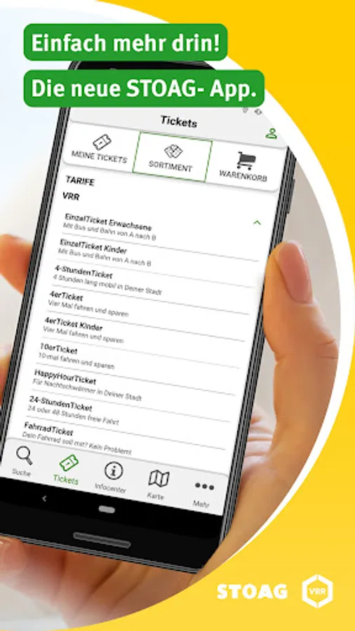 The STOAG app contains timetable information for connections in Oberhausen, the entire VRR and neighboring traffic groups.