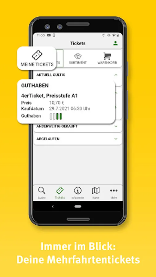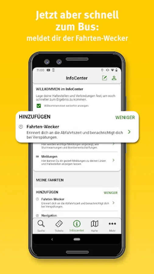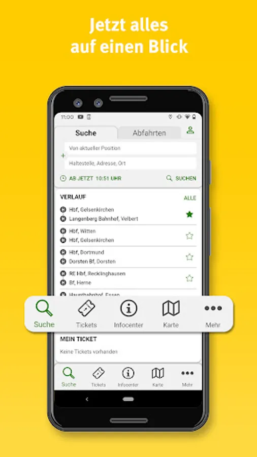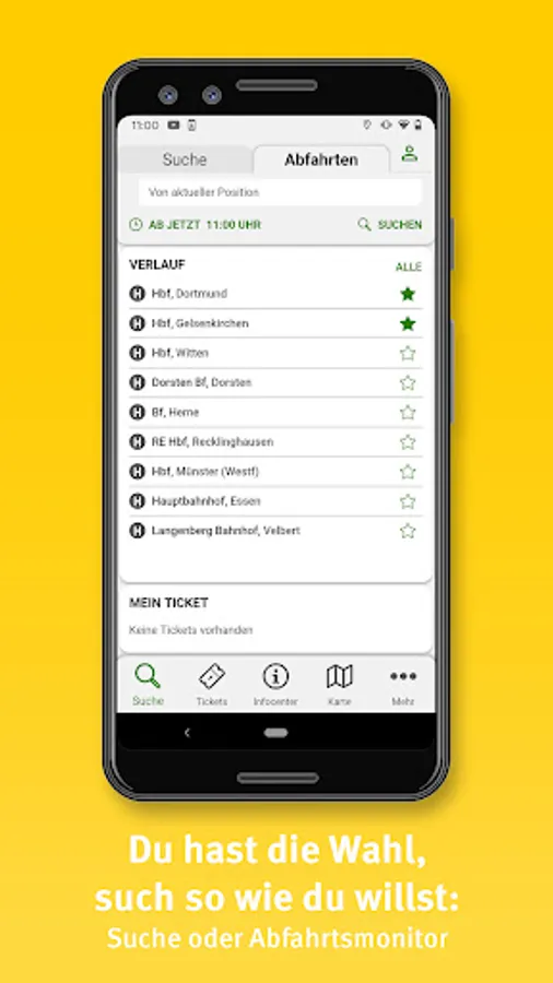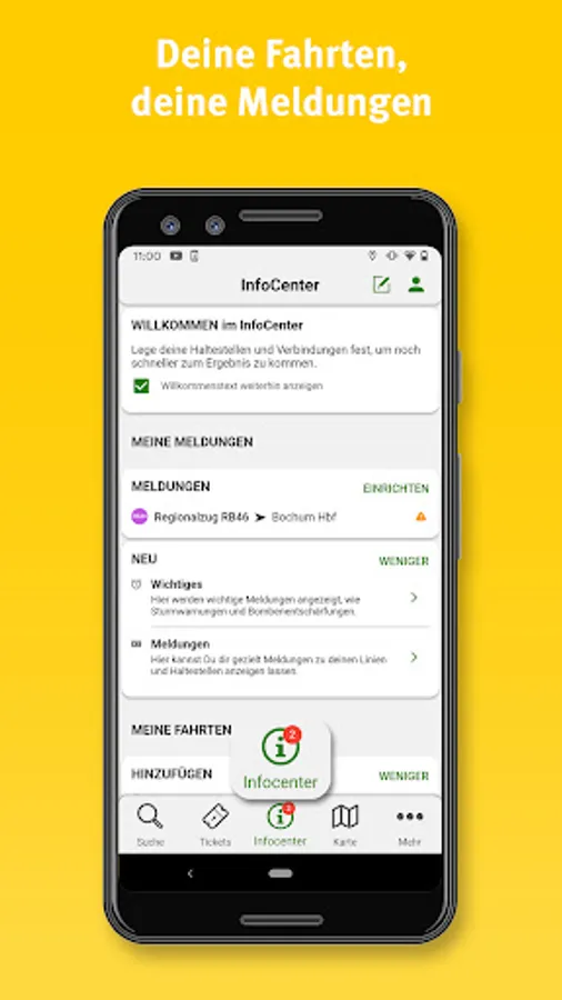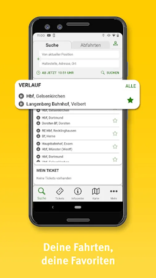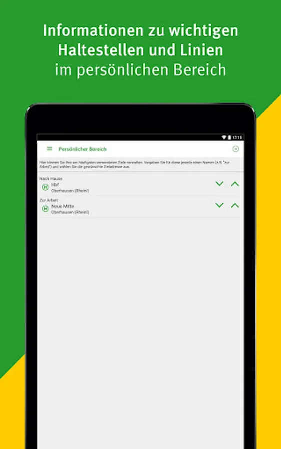 • Personal area: For regular journeys by bus and train, you can save your most important destinations in the personal area and you will receive important information at a glance in the future.