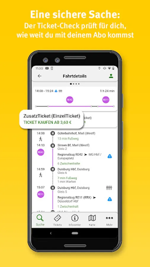 • Bicycle routing: by bike to the stop or from the stop to the destination? The app shows you how the bike can best be combined with bus or train.
