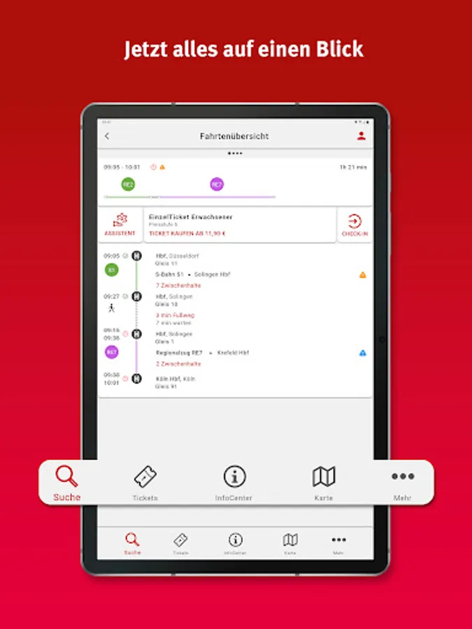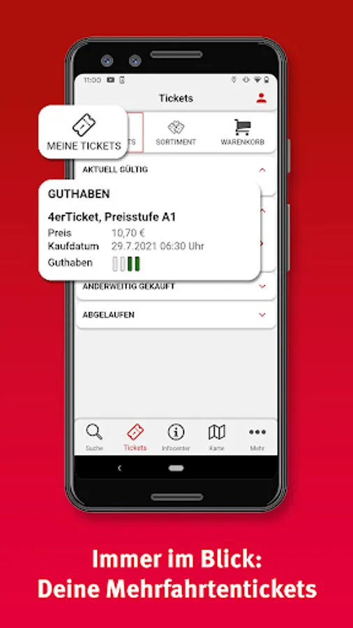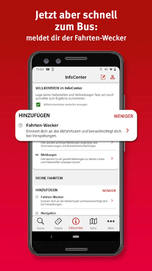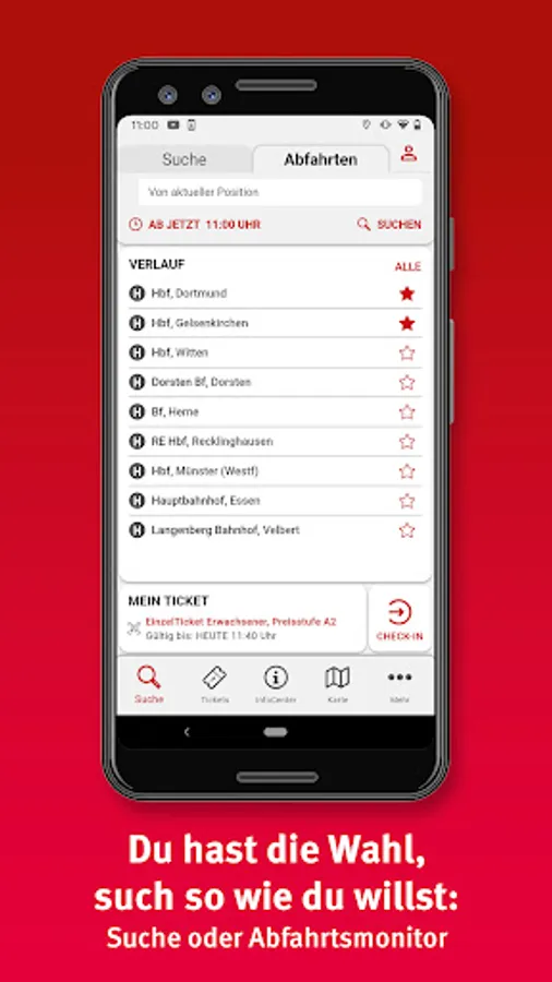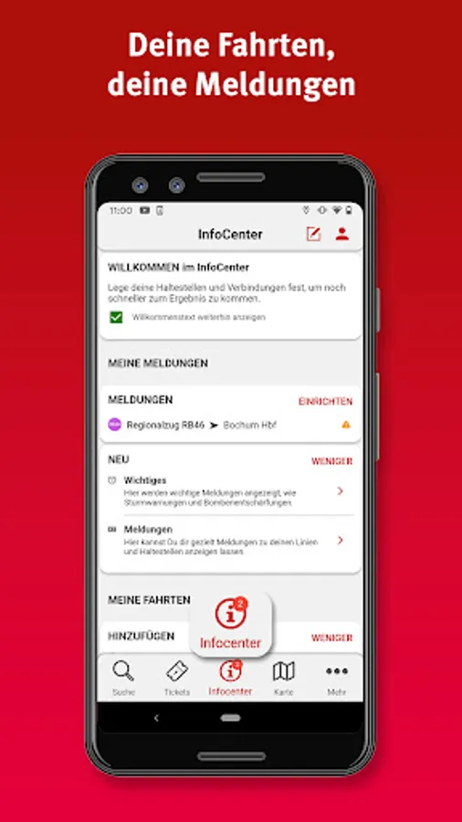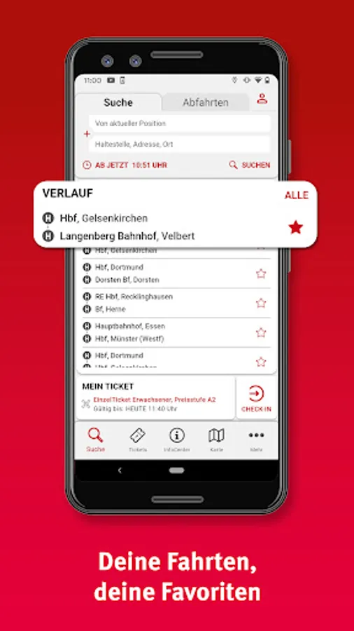 • Personal area: For regular journeys by bus and train, you can save your most important destinations in the personal area and you will receive important information at a glance in the future.