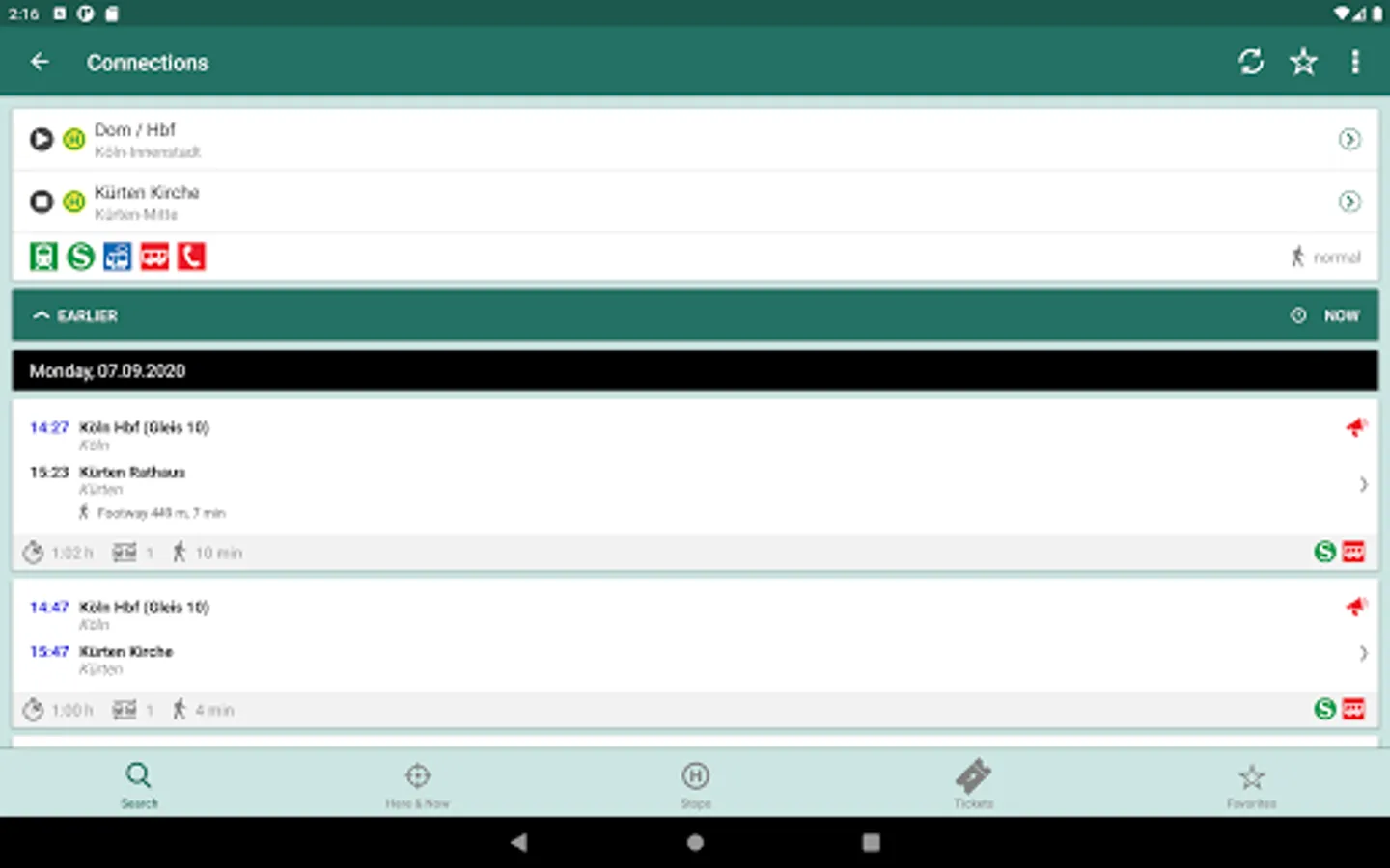 Enter origin and destination - get the best connections. With favourites and choice of stopover and means of transport.