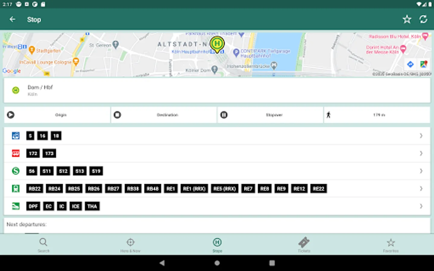 All stops and departure times in the vicinity of your location at a tap - of course also with map display