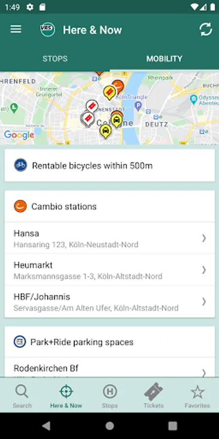 You can plan your trips and buy tickets easily. With connection search, real-time timetables and interactive route plan. You can also see car sharing and rental bikes at your location.