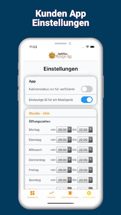 With this specialized app, only tanning salon operators have the option of calling up statistics on visitor numbers, app usage and settings of their tanning salons anytime and anywhere.