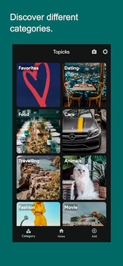 Either have a random topic suggested to you or search specifically for topics from certain categories.