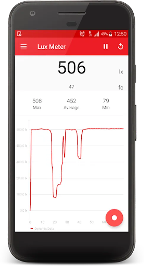 Lux Meter is a simple light meter for measuring illuminances by using the light sensor of your device. The light intensity is shown in lux and fc.