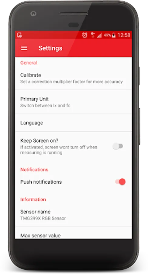 The light intensity values shown in this application are indicative and depend on your device. Some devices does not have a light sensor or the accuracy varies and therefore neither guarantee nor assume responsibility for the accuracy of the information.