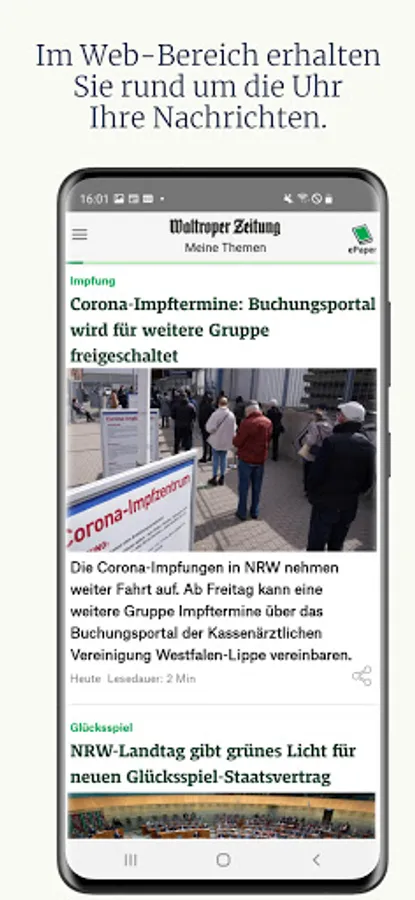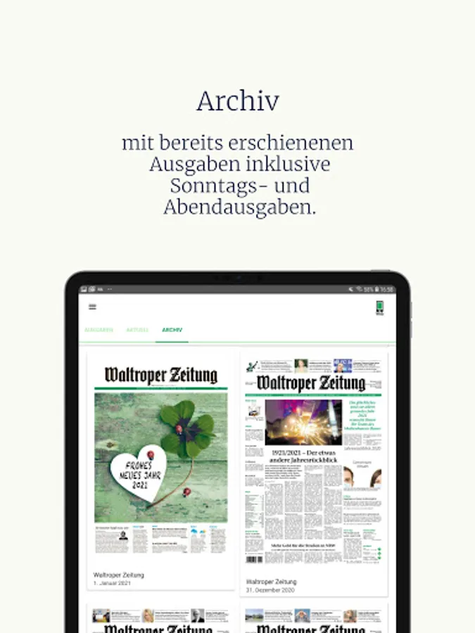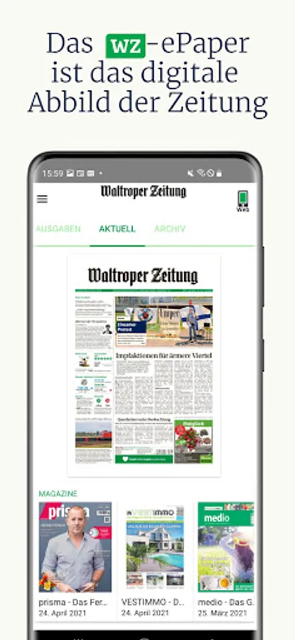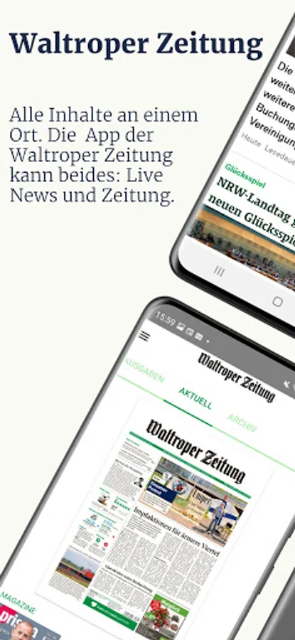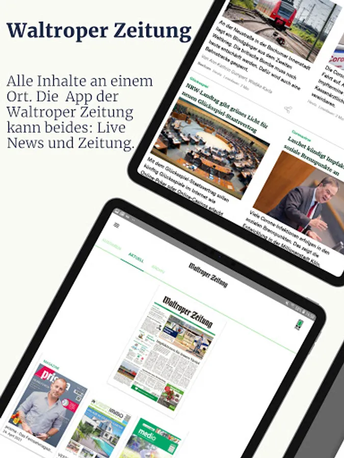 The free app bundles the digital offers of the Waltroper Zeitung and offers the complete content of the daily newspaper (subscription required) and the website including all articles and videos.