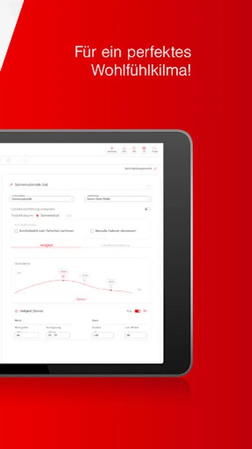 Each product can be parameterised separately and default values are saved directly. Control modes can be configured and limit values set. User management allows you to set up separate lists of operations for each user. An intelligent plausibility check of the configuration ensures no errors are made in the settings. And since there's no need to connect to the central control unit, you can prepare for your arrival at home while you're still in the office.