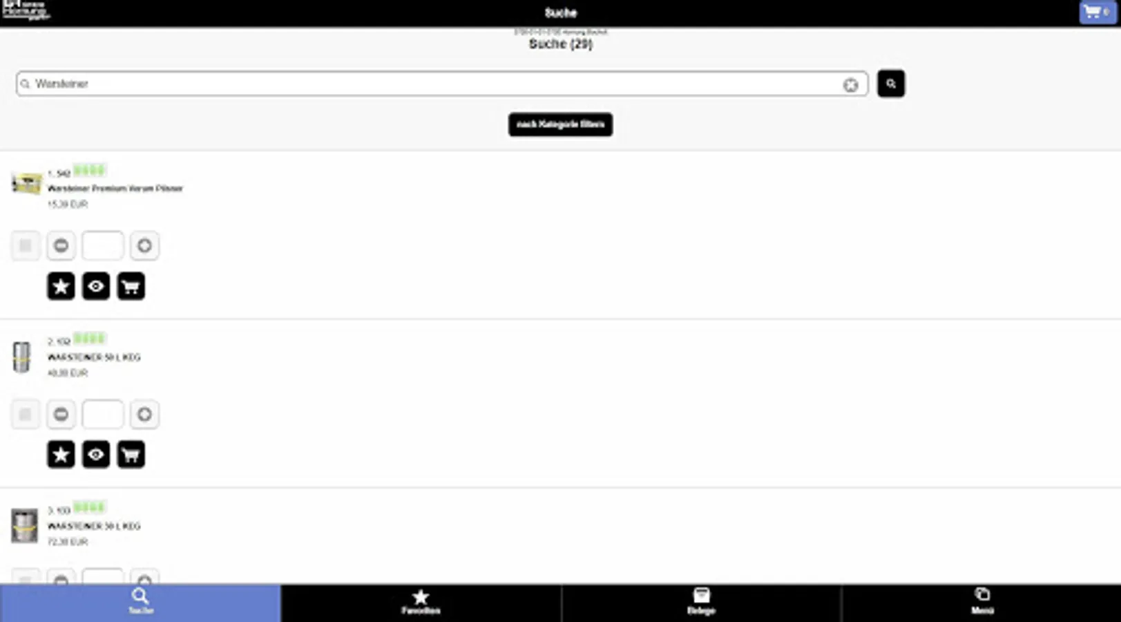 Shop Sauerland drinks - this is the virtual Getränkefachgroßhandel Professional, where you can purchase our entire range pay app. In addition to the order from our product catalog you will also find the possibility to easily scan the barcodes of your inventory items, these should be positioned so the cart and purchase - even when you are offline!