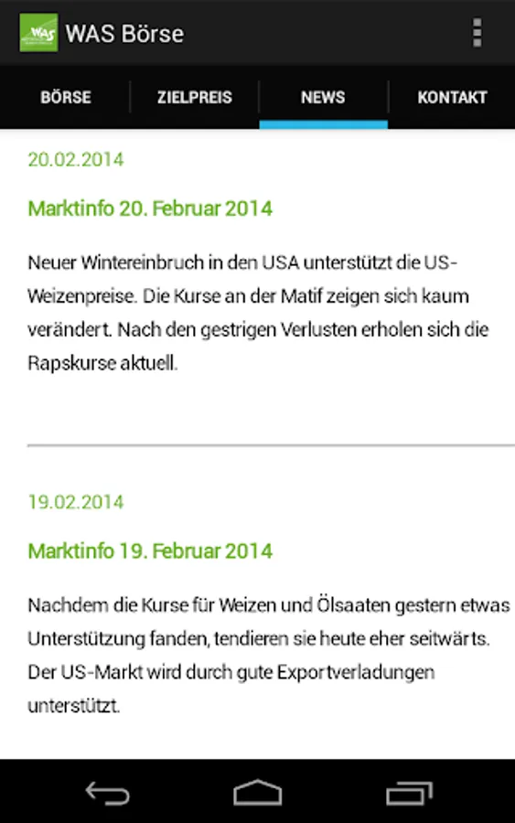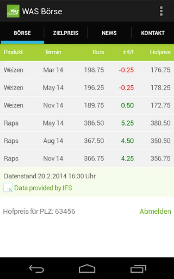 The free WHAT grain App allows you after registration access to Matif exchange data for wheat and rapeseed (15 min.-delayed) and market news compiled to grain and rape of WAS.