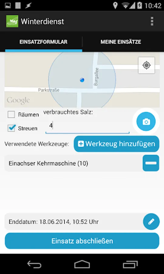 The free winter service app, the Wetterau Agricultural Service GmbH (WAS) allows you to order management and use of documentation for winter service objects. It may be time, place, photographs and application parameters recorded and retrieved in an online database.