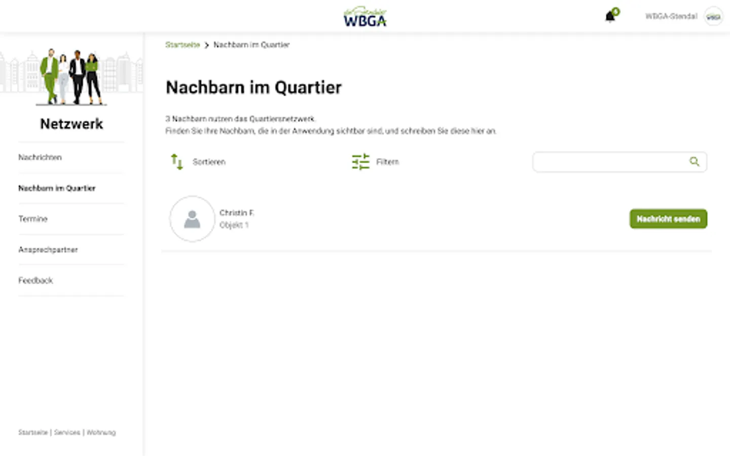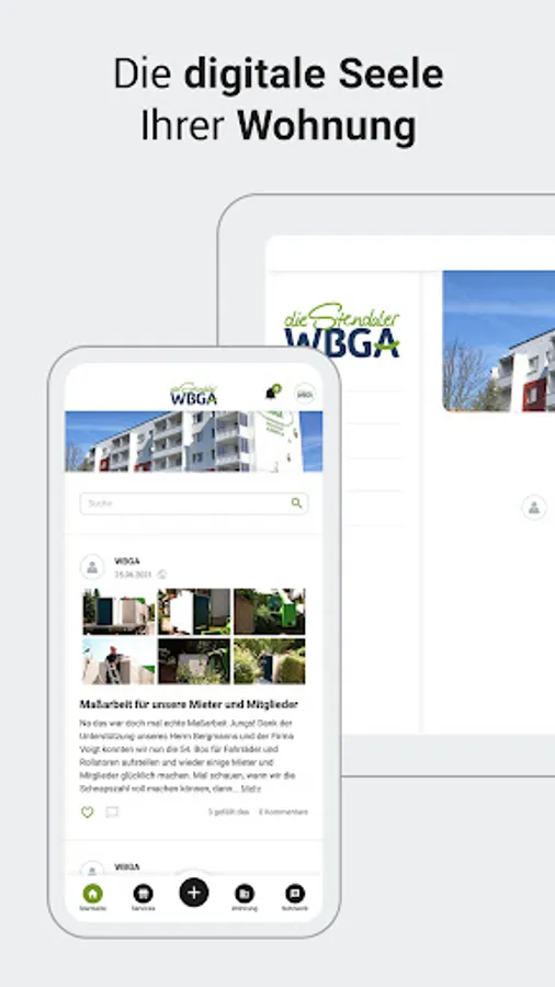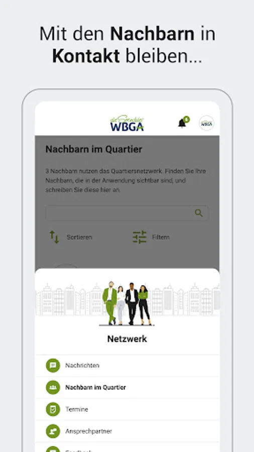 The WBGA tenant app offers users a digital network for a lively and urban quarter. Functions from the areas of administration, community and services are bundled in one application.