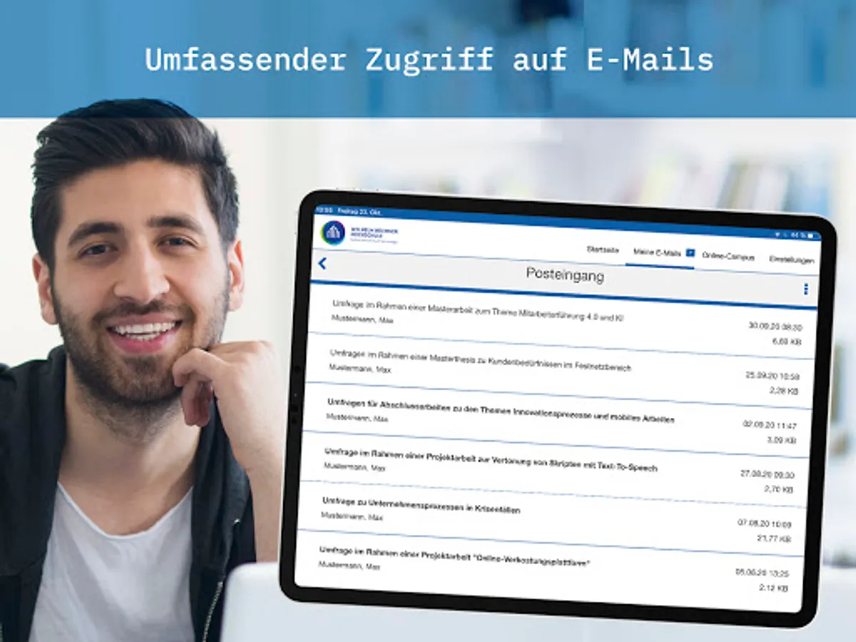 Receive all campus emails in real time on your smartphone and answer them directly in the app.