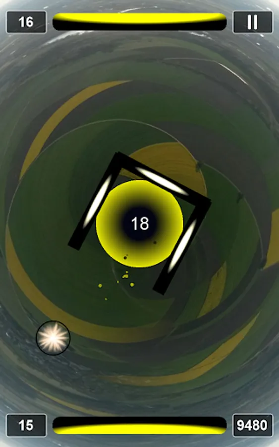 Use the gyroscope (or one finger) to position the two reflectors at the right places to reflect the ball of light in such a way that it hits the center ball until it explodes.