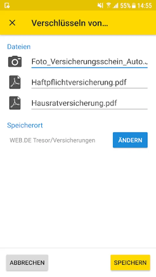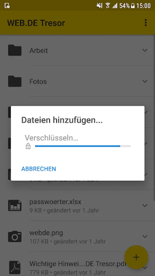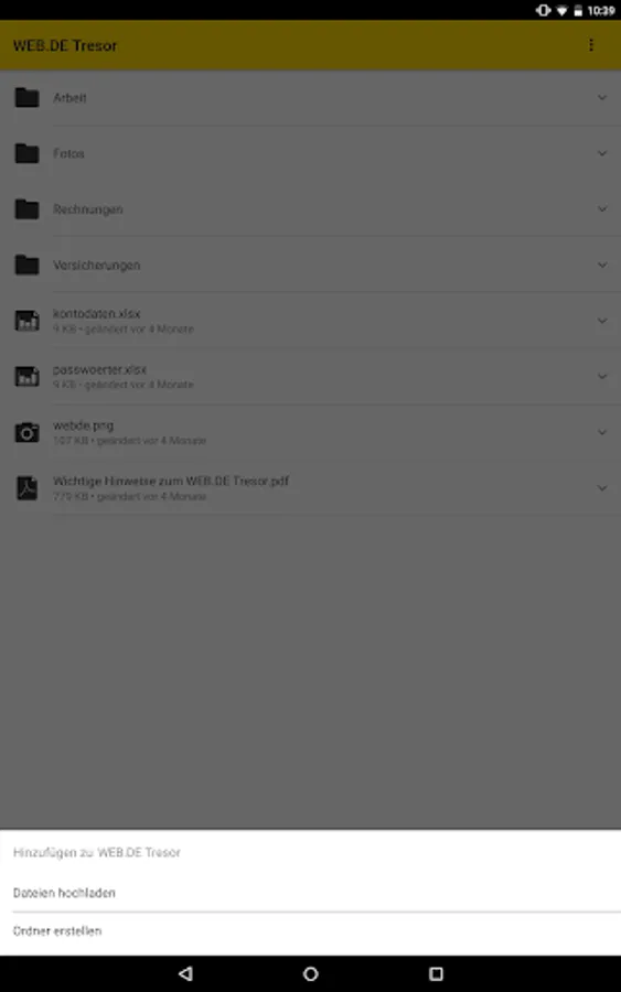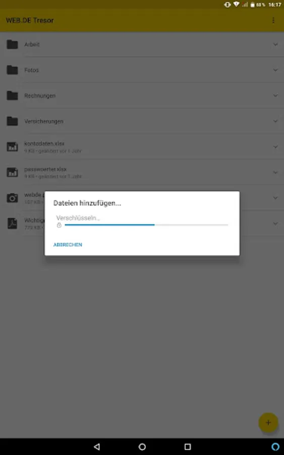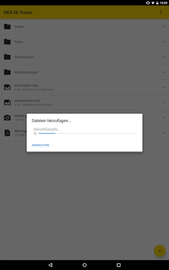 How it works: Assign your own password specifically for your WEB.DE safe. Using the one-time generated, individual key the files be converted directly on the smartphone in unreadable characters salad. After that, the synchronization with the online storage is done. Practically it: Except for adding the files to the vault app everything is automatic - you have to do nothing more.
