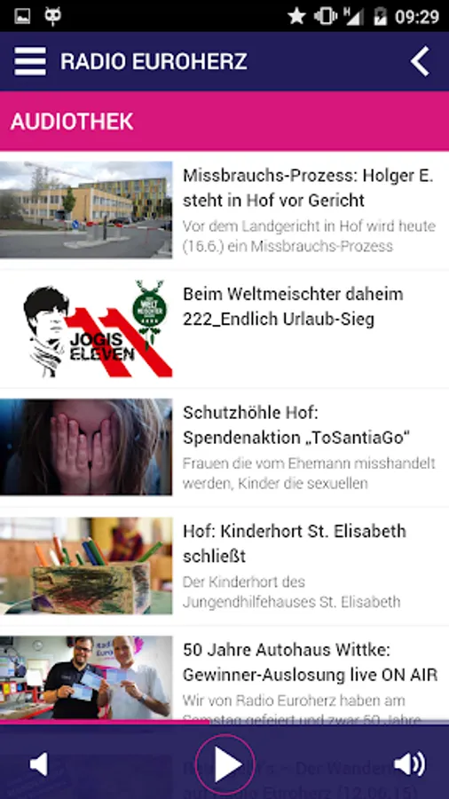 Note: To use the app by radio "RADIO Euroherz" we recommend an unlimited data plan, since high amounts of data.