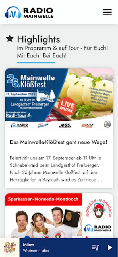 Whether radio Mainwelle highlight or action - with our app you are always up to date!