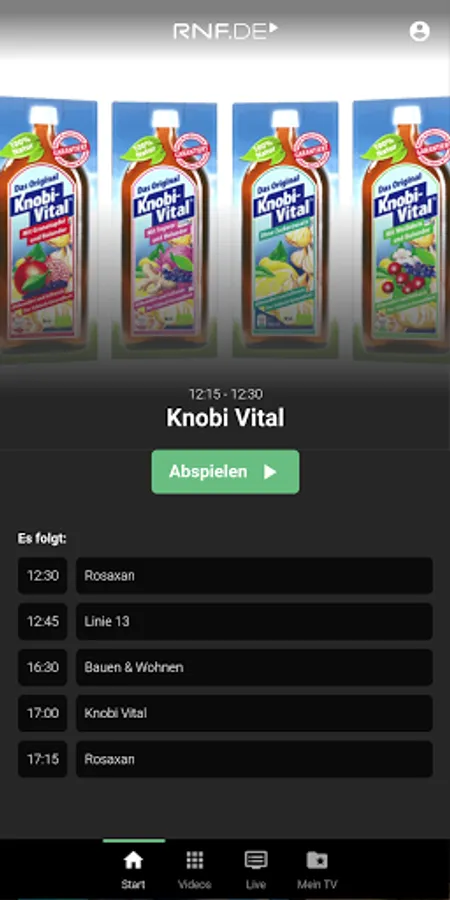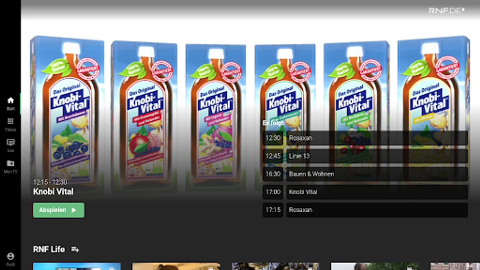The live stream can on the Web at rnf.de be accessed via satellite Astra (Kanal Lokal TV) as well as the apps for smartphones, tablets, smart TVs and TVsticks (Google Chromecast AppleTV, Amazon and FireTV).