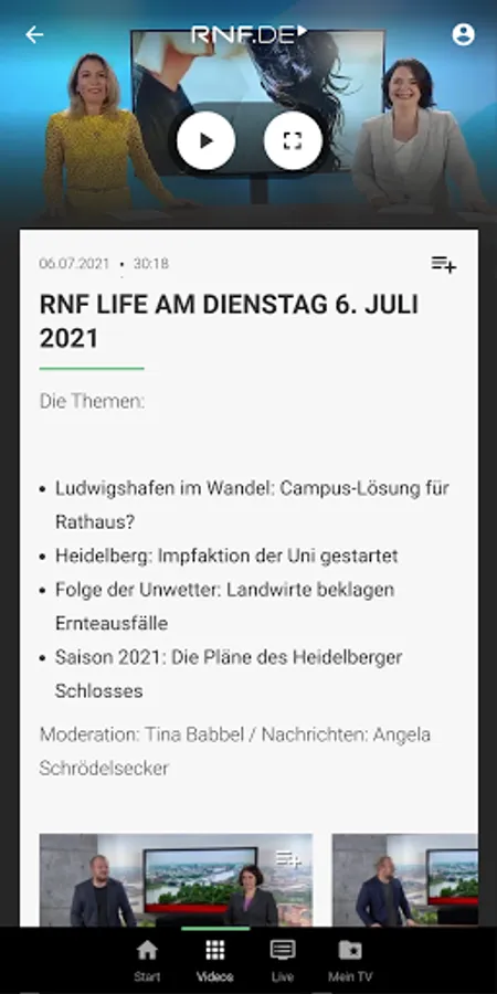 RNF is the TV-regional program for the European Rhine-Neckar.