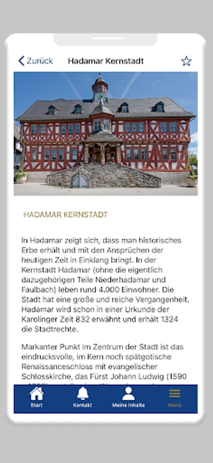 Everything about the city of Hadamar in one app: contact persons in administration, associations, companies, restaurants, public institutions, sights and everything you need to know about the city of Hadamar. With the app's calendar of events, you'll never miss an interesting event again, and in the area of leisure, you'll get lots of tips for activities in the city. You can also receive all reports and announcements from the city as push notifications. The waste calendar contains all collection dates and also reminds you via push message to bring the relevant waste out. The "My content" area also offers you the option of favoring pages and topics and being informed of changes via push message.