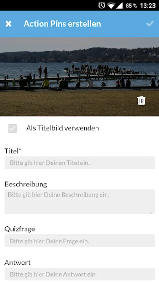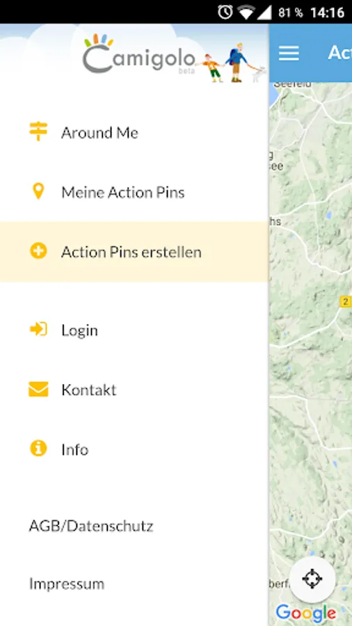 With a photo (Action Pin) can you interesting places for families with other families to exchange, for example, Playgrounds, sports fields, etc.