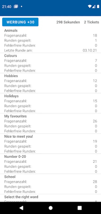 New mode Word Salad. English vocabulary can be learned here. The German word and all letters of the English vowels are displayed. These must then be clicked in the correct order. Wrongly answered vowels can be specifically repeated. This makes vocabulary training fun. More vocabulary and languages will follow soon.