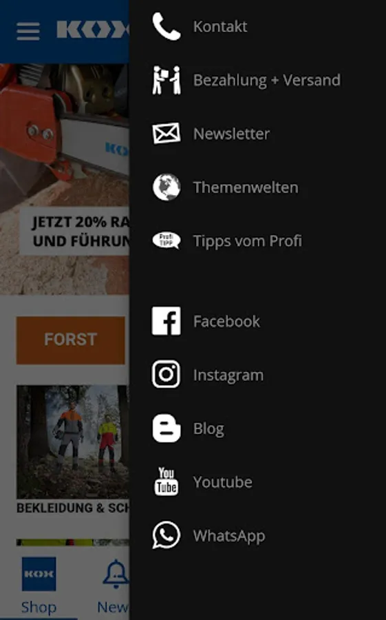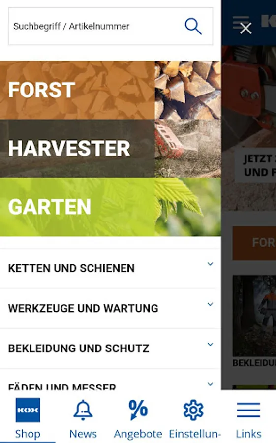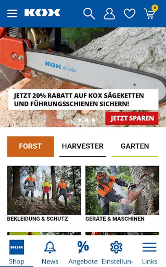 KOX is your professional mail order company in forestry and gardening: Easily buy over 3,000 items on the go!