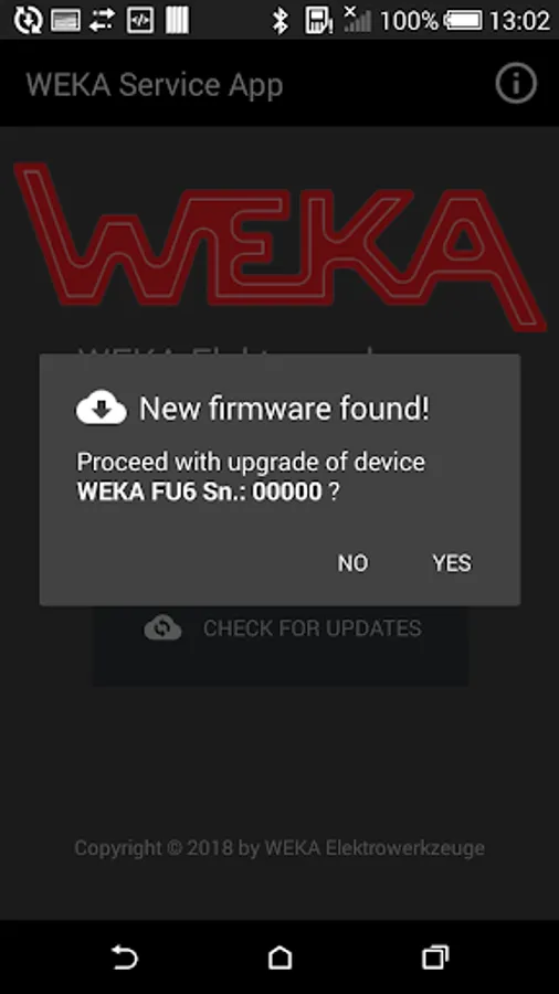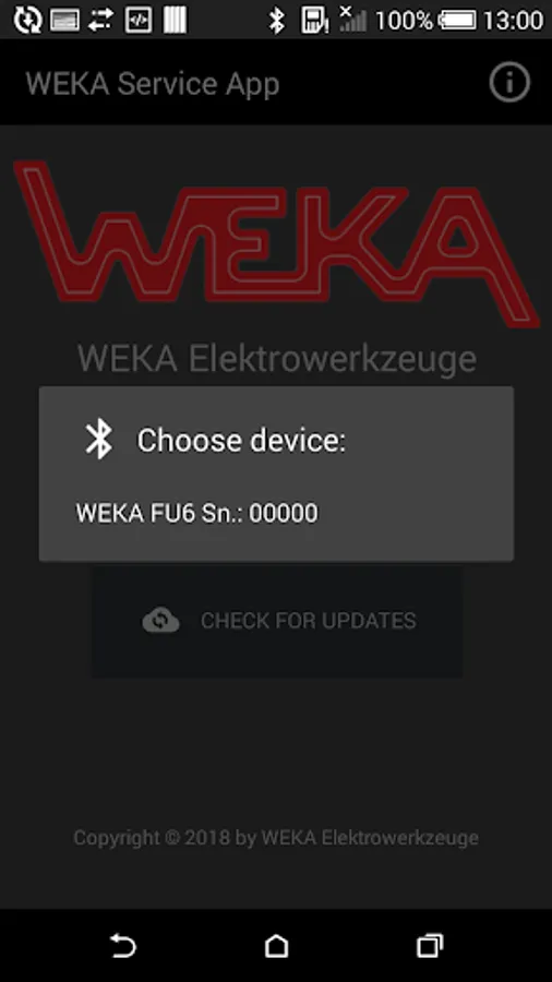 The WEKA Service App enables software updates for WEKA devices.